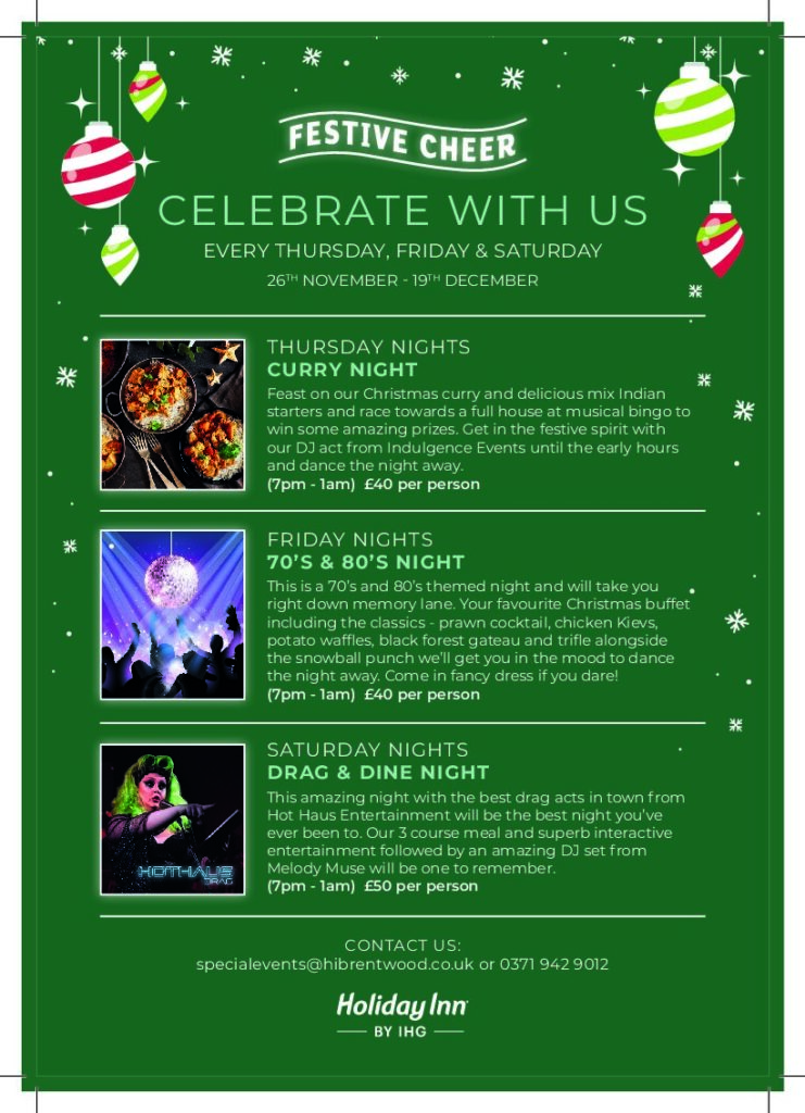 Join the Holiday Inn 28th November – 19th December for festive party nights, every Thursday, Friday and Saturday.